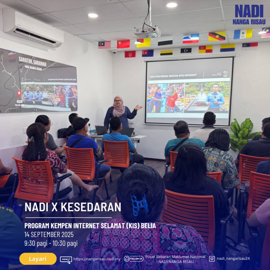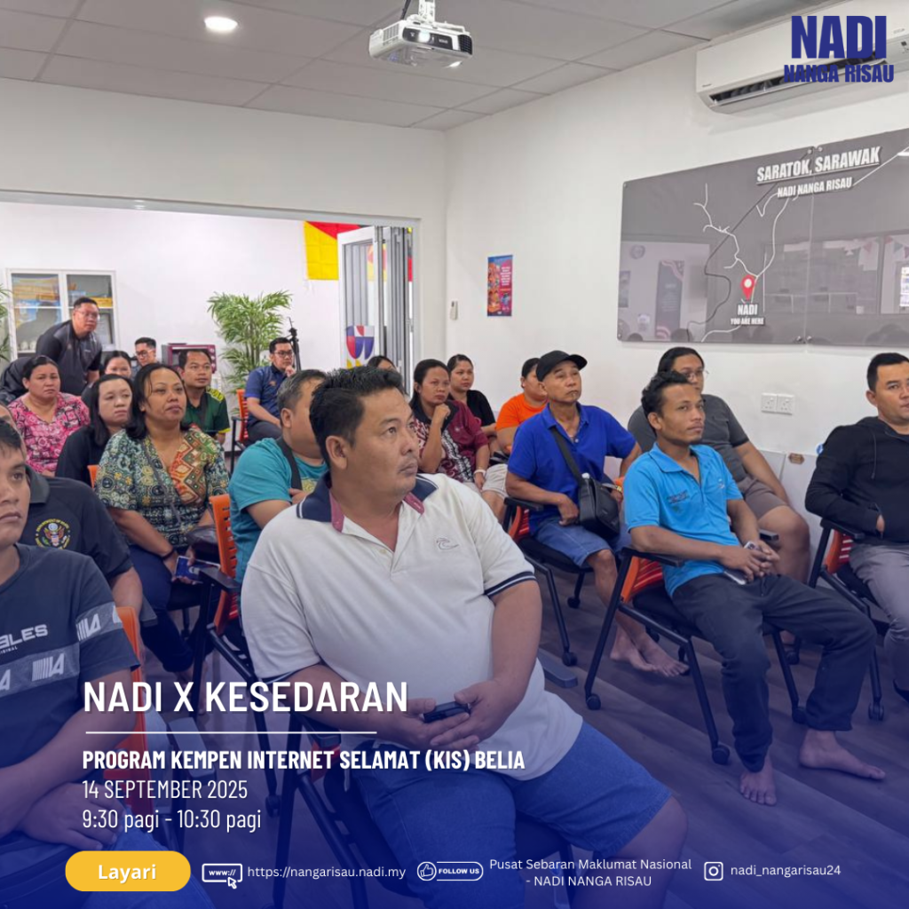 Pada 14 September 2025, NADI Nanga Risau telah melaksanakan Kempen Internet Selamat (KIS) bersama golongan belia tempatan. Program ini dijalankan dari jam 9:30 pagi hingga 10:30 pagi dengan penglibatan 19 orang peserta belia serta dibimbing oleh 2 orang fasilitator iaitu Pengurus dan Penolong Pengurus NADI Nanga Risau.