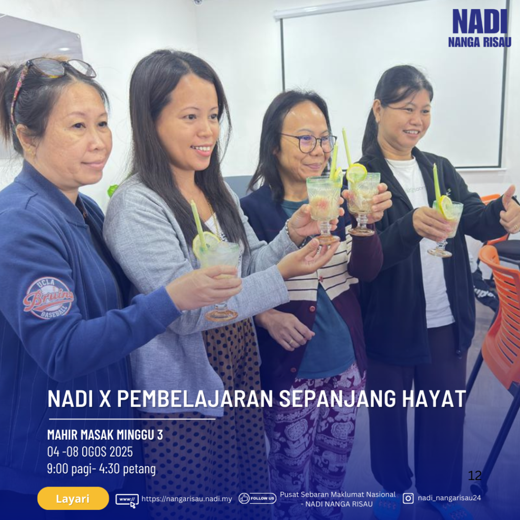 Bukan setakat masak, tapi hari ini kita β€˜shake it up’! πŸ₯€ Peserta belajar buat Mojito versi NADI – segar, manis masam, dan cukup β€˜umph’ untuk cuaca panas! πŸ‹πŸ’¦