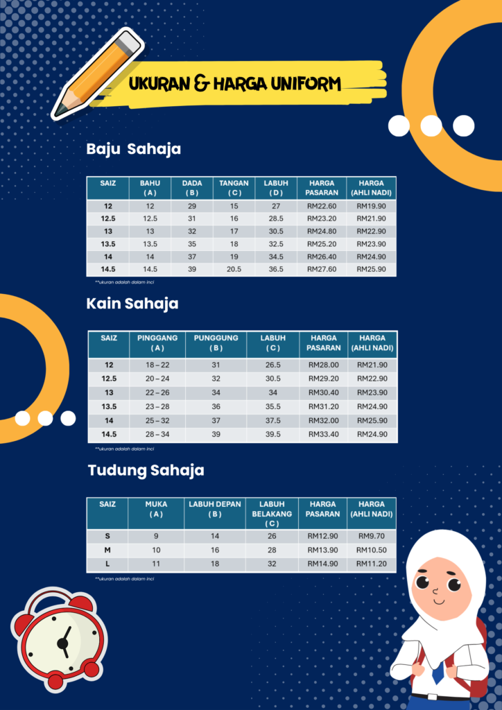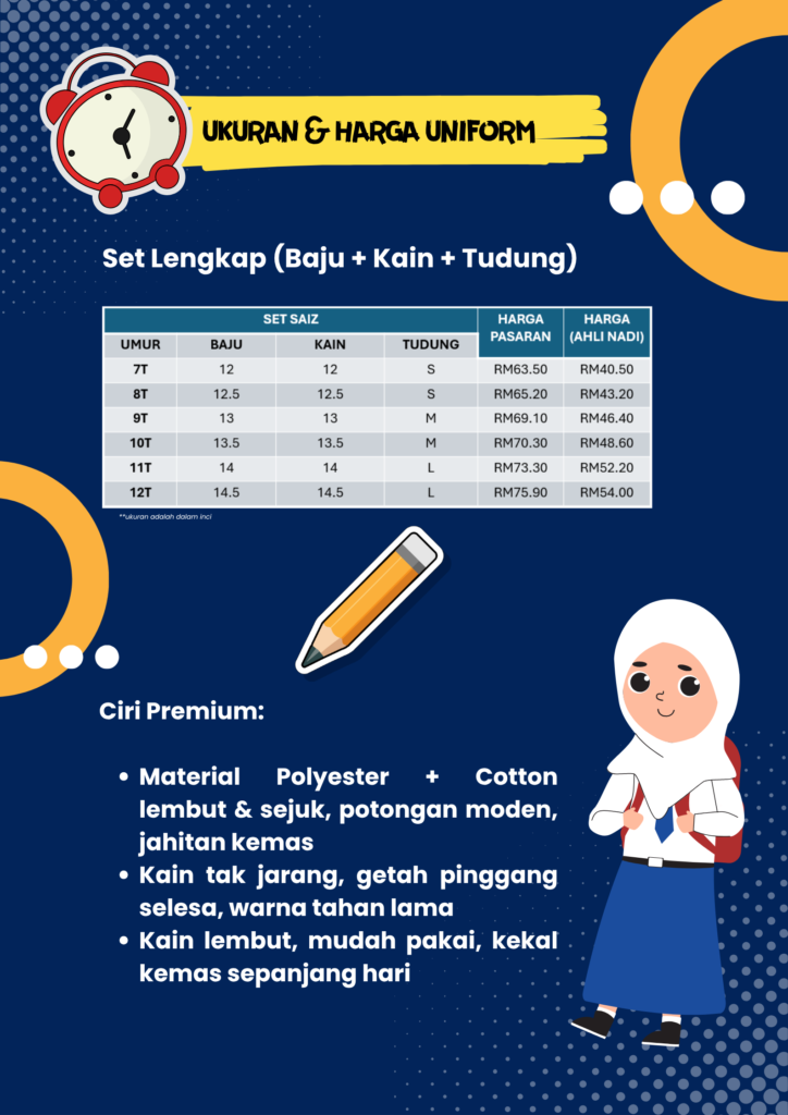 Kami sediakan uniform sekolah perempuan yang selesa & kemas, supaya dia pergi sekolah